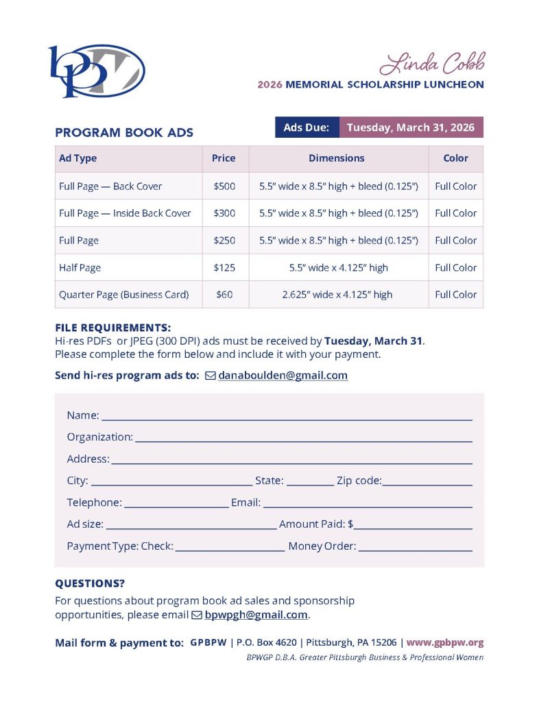 Join the ladies of GPBPW who meet on the first Tuesday of each month from 6:00 – 8:00PM. (Unless noted). As a friendly reminder, members attending our in-person meetings are encouraged to arrive by 5:45PM to begin the meeting on time, unless otherwise posted.